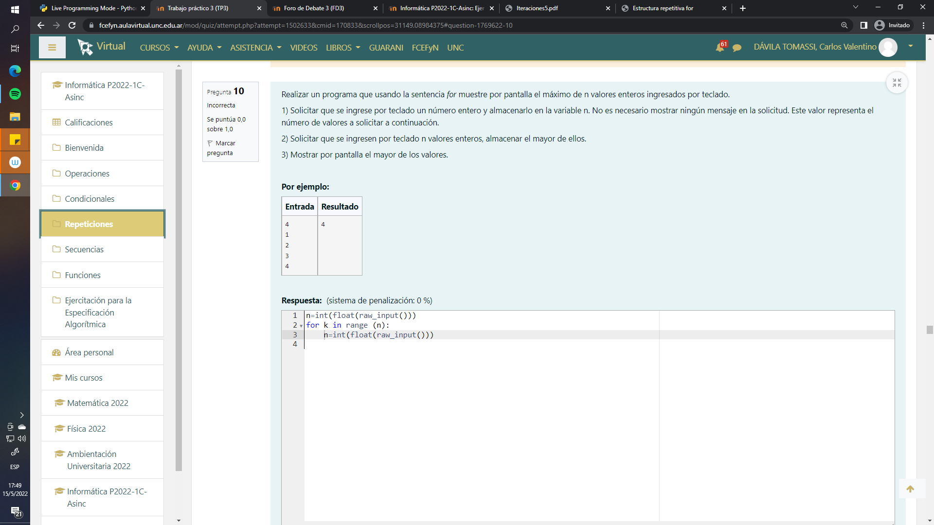 En el ejemplo que te doy, el for in recorre n-1 valores ya que antes ya hemos pedido el primer valor. Esto es necesario para darle un valor inicial a candidato.